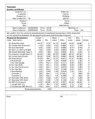 我們的安瓶機還備有在線攝像的尺寸和外觀檢測系統,可同時檢測到安瓶的所有缺陷,對安瓶百分百檢測,通過檢測的安瓶保證百分之百是合格的,該生產線還裝有生產信息的記錄系統,自動生成產品的檢驗報告