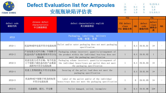 我們對安瓿的缺陷制定了缺陷評估表,對95項缺陷進行質量控制,涵蓋了全部的缺陷項目,能使您對我們的產品質量完全放心。